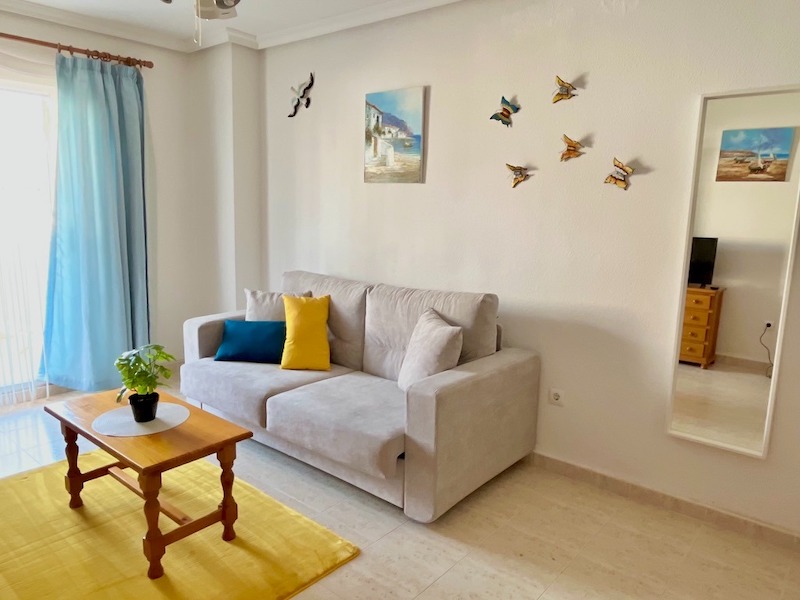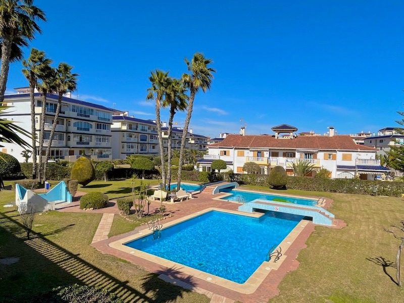 Krásný slunný apartmán s prostornou terasou uprostřed jedné z nejkrásnější urbanizací Parquemar La Mata se dvěma soukromými bazény, zahradou a dětským hřištěm.